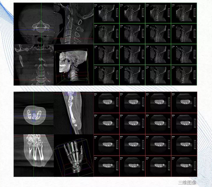 术中三维成像和横断面图像提供多角度的手术诊断信息,辅助医生进行术中评估判断,诸如骨折复位情况和内植入螺钉的尺寸和位置,辅助手术更好地完成。