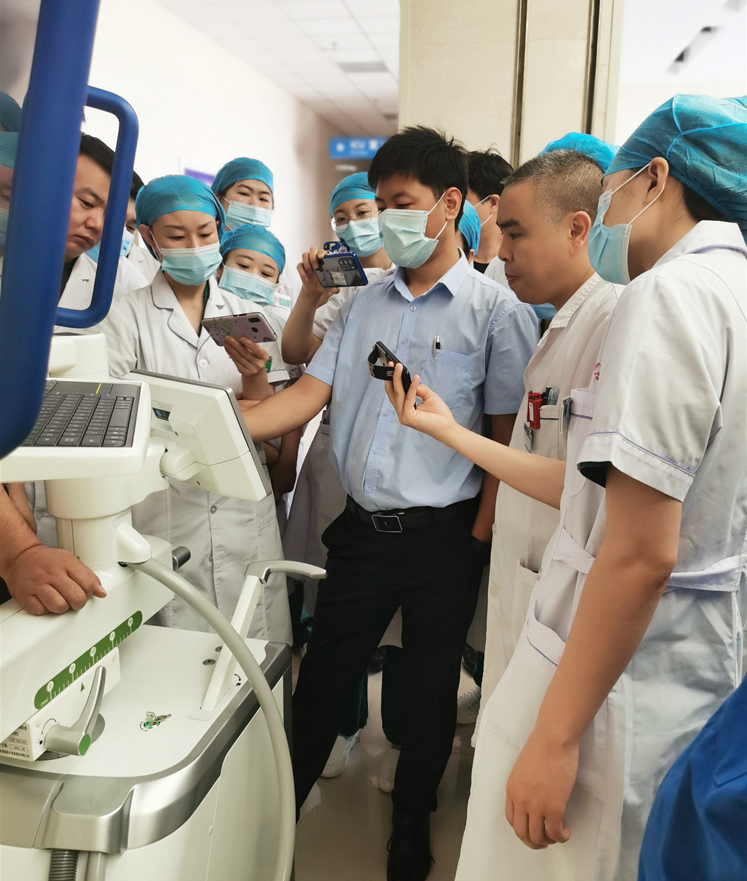 通辽市位于内蒙古东部,是蒙古民族的发祥地之一,在乍热未酷的六月,通辽市一家医院的手术室迎来了一位新成员—— “慧瞳”。装机医院对于新设备操作的学习热情非常高昂,骨科医生和护士纷纷过来“围观”?;挡僮骱腿砑缑娴难?,简单易懂,医护人员轻松掌握。