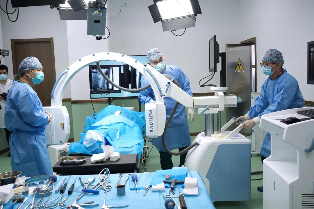 好医术在南京建有3000余平米的临床教学实训基地,基地配有多套解剖示教间、高标准视听教学会议室、多媒体直播教室和空中花园直播会议室等,为临床教学研究提供了良好的硬件基础。基地大量的手术实操培训对影像设备的数量和品质有着较高的要求,为助力培训班顺利开展,帮助更多的医生实现技能提升,目前普爱医疗已为基地提供多款C形臂,助力基地开展30余次骨科训练营,覆盖近40名专家及1500名学员。