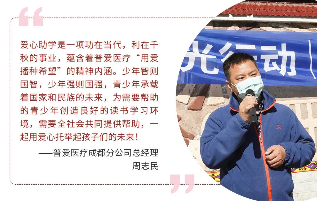 10月27至28日,普爱医疗携手会员俱乐部成员,在四川凉山州盐源县开展公益活动,为三所小学(凉山州盐源县梅子坪镇中心小学、凉山州盐源县梅子坪镇巴折教学点、凉山州盐源县甲米镇小学)修缮校舍、资助教学物资,为师生们送去保暖衣物,让师生们在这个冬天感受到一份特别的温暖!