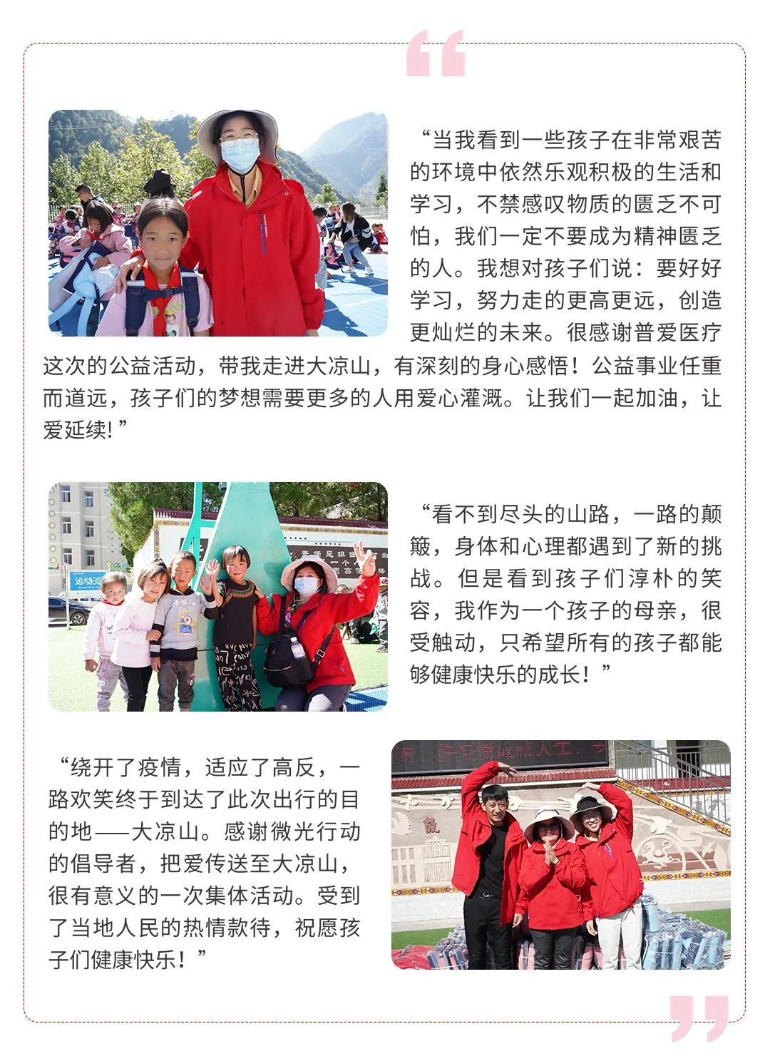 合抱之木,生于毫末;九层之台,起于累土;践行公益,永不止步。孩子们开心的笑脸,果农们真挚的感谢是普爱医疗继续前行的动力!小小的善举不仅可以帮助别人,也可以实现自我的价值。让涓滴之水成为海洋,颗颗爱心变成希望,普爱医疗“微光行动”,一直在路上!