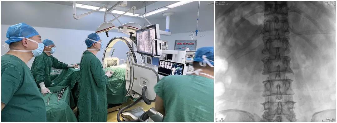 医生在影像引导下在L5/S1椎弓根处打入医用螺钉
