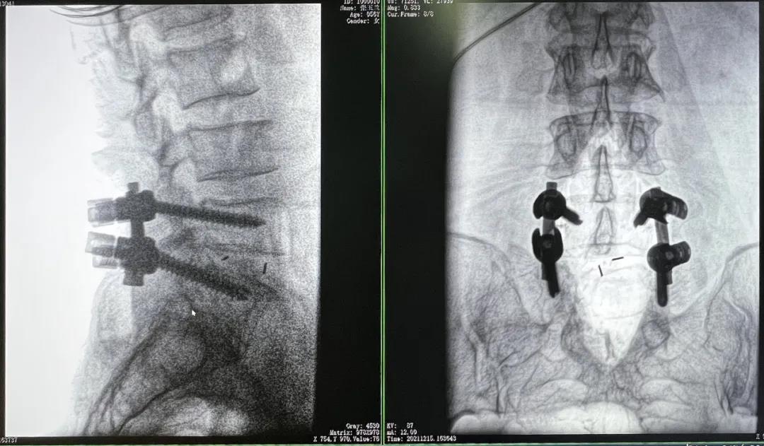 患者1:女性,56岁,L5/S1椎间盘椎板减压+钉棒固定术