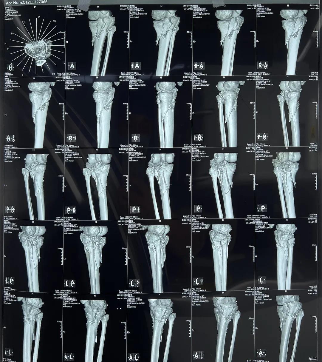 患者2:男性,52岁,胫骨骨折切开复位钢板内固定术
