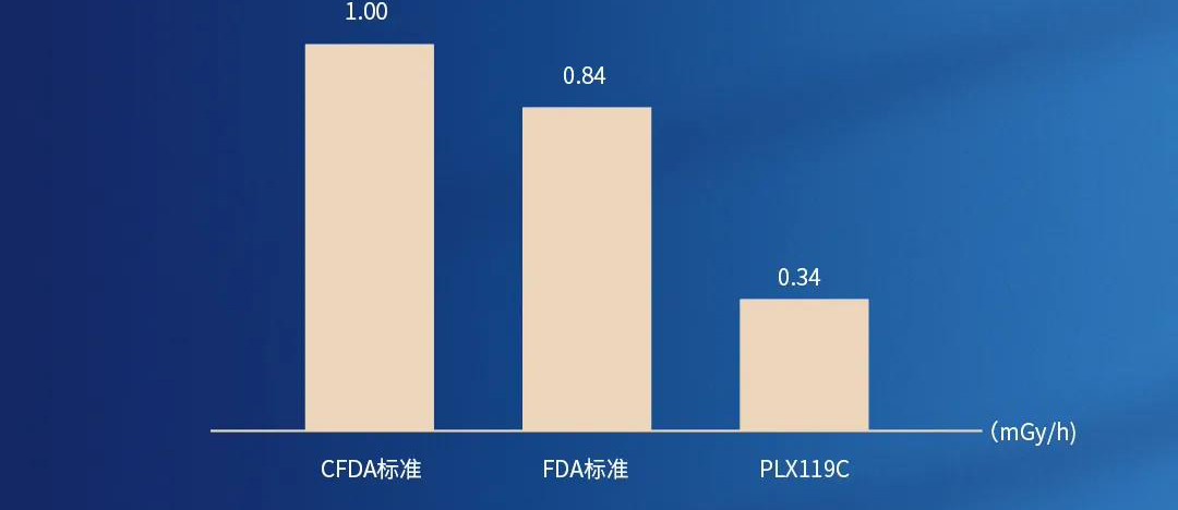 射线管加载状态下的泄露辐射量低于FDA标准和CFDA标准,有效提高了X射线诊断医疗照射的防护能力。