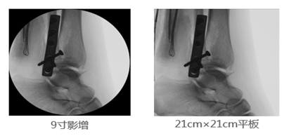 2、成像视野:在图像尺寸方面, 9英寸平板与9英寸影增相比,平板探测器成像为“方形”,较同尺寸的影像增强器的“圆形”成像而言,有效视野面积扩大了22%,使医生的观察视野更加开阔,极大的提高了手术的效率,同时提高了各种手术的安全性。