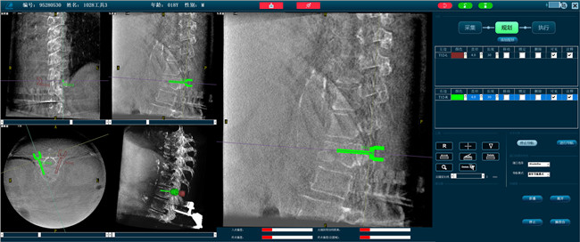 使用普爱医疗三维C形臂对患者进行胸椎影像扫描及三维重建,图像被同步传输到普爱医疗骨科机器人导航系统。